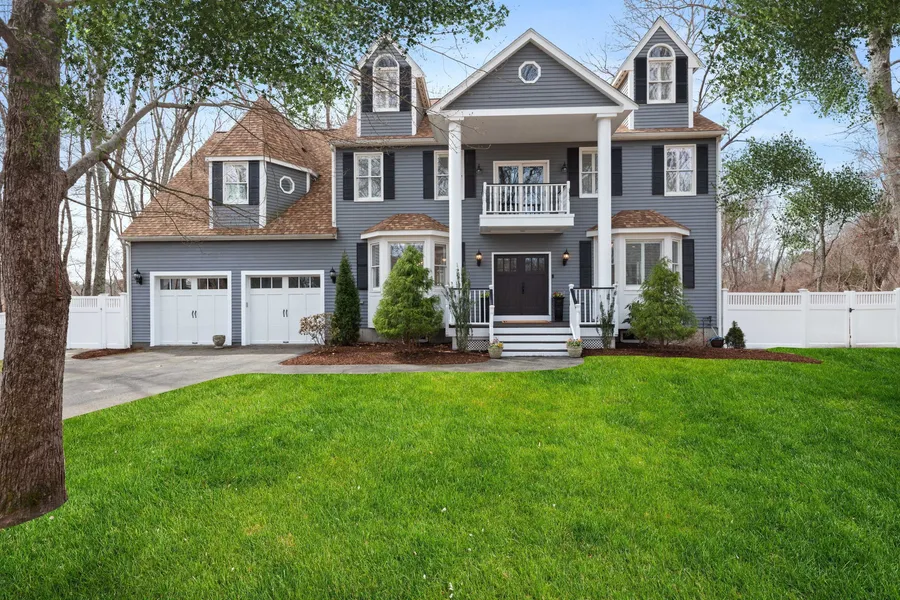 Enter the foyer of this beautiful, updated colonial, and be wowed! From the warm, oak flooring throughout to the 9' ceilings on both the first and second floors and the oversized moldings & baseboards, quality is evident on the four finished levels. The open-concept living room and family room provides a great layout for entertaining as it opens into the white kitchen with marble and quartz touches. A spacious dining room seats all your friends and family! Sliders off to the large composite (and new!) deck allow views of the fully fenced-in 1.75-acre lot. On the second floor, you will find an expansive primary suite with two walk-in closets and a luxurious spa bath. Another ensuite bedroom with a custom closet and two more bedrooms sharing a full bath provide space for all. Laundry is fun in the designer-worthy space. The third level features two additional flex rooms and a full bath while the lower level provides a gym and play space! Updates and beauty abound in this home!