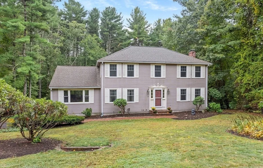 Welcome to this spacious hip-roof Colonial in the quiet cul-de-sac neighborhood of Pheasant Hill. This 4-bed, 2.5 bath home offers over 2,500 sq-ft of living area and a huge backyard abutting acres of wooded privacy. The inviting foyer is flanked by a front-to-back formal Living Room w/ fireplace and formal Dining Room which leads into eat-in kitchen w/ SS appliances, center island, & dining area w/ bay window. Great Room w/ vaulted ceiling leads into 4-season Sun room w/ French doors leading out to composite deck overlooking the backyard. Upstairs features the Primary bedroom w/ en-suite bath & walk-in closet, 3 additional bedrooms & full bath. Walk-out lower level features plenty of space & access to the 2-car garage. Outside is a backyard oasis providing plenty of space for outdoor entertainment, featuring wooded privacy at the rear of the property.