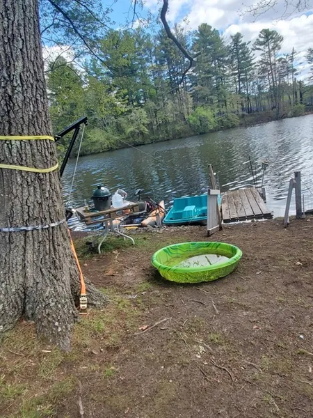 This lot has a fire damaged home on it that needs to be demolished. There is a 2 bedroom septic system that was installed in 2014. Lot has frontage on Box Pond providing fishing, skating, kayaking.