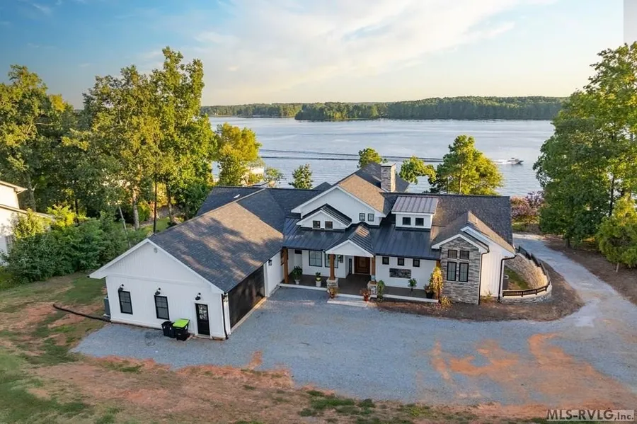 Welcome to PARADISE...161 Paradise Drive, Henrico. Meticulously thought-out, custom-built home with board and batten siding for that fresh, stylish,modern look. Located on the main lake between mile marker 1 and 2, it is situated on 2 lots equaling 1.32 acres in a cul-de-sac with NO HOA! With 5 bedrooms,4 baths and 2 half baths & gorgeous elevated & expansive views of the lake from many rooms, it is made for entertaining. The main floor has an open concept with a wall of windows and a phenomenal stone fireplace as the focal point. The cleverly designed kitchen has low maintenance, heat, fire, stain & moisture resistant Dekton countertops, custom hood fan, 2 refrigerators & a large island that accommodates extra seating for all your family gatherings and parties. Off the kitchen is a spacious pantry & a laundry room. The main floor also has 2 ensuite bedrooms, a dining room and a den/office which leads to one of the porches. The covered back porch with built in gas log fireplace lends itself to relaxing, reading or napping! The porches, deck and double boathouse have composite decking for longevity. A side garage will house your golf cart and still has room for a shop/storage area. It houses 2 on demand hot water heaters. The walk out basement has a kitchenette/dining area with a third refrigerator, a rec room with a hidden safe room,3 bedrooms, another laundry room and 2.5 bathrooms all leading to a patio. The house has a security system with outside cameras that conveys and is wired for surround sound if you want it. A nice, easy path leads to the double boathouse with a rip-rapped shoreline. The water at the end of the pier measured 8.5 feet on the day of listing. Sellers are finishing the retaining wall on the right side of the house. See Special Features list in docs.