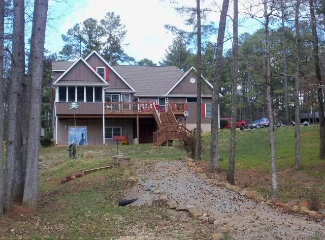 Waterfront home with lovely views of Lake Gaston's Main Lake. This 2876 sqft homes main level enjoys 2BR/1BA, eat-in kitchen w/ bar that seats 4, gas log FP, living room w/ access to lakeside deck & screened porch. The upper level has 2BR and large ceramic tiled BA. Full-finished lower level w/ addl rooms for guests or office, large family room area w/ access to lakeside patio. Throughout the home youll find hardwood, tile or carpeted areas along w/ pocket doors. Circular paved driveway, double attached garage, addl storage space for the water toys or garden supplies. Full house generator that automatically comes on when the power goes out. Lakeside fire pit & sitting area. Gently sloped lot to water and single boathouse.