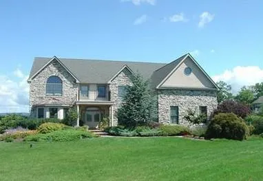 Absolutely exceptional Nazareth SD home. Setting on a large 1.2 acre corner lot, overlooking the mountain views, this stone and stucco Colonial features extensive landscaping, a resort-like back yard with inviting inground heated pool, spa and koi waterfall pond, and wonderful large rooms with windows overlooking the grounds and picturesque surrounding area. The captivating entrance leads into a gorgeous sunken living room, and a Great Room with fireplace and bay window with window seats. You'll discover a Gourmet kitchen w/granite counters, tile backsplash, maple cabinets, full pantry wall-recessed lights & hardwood floors, a formal dining w/built in pantry, an exquisite master suite offers a sitting rm w/cathedral ceiling & french doors. Enjoy the master bath 2 sided fireplace as you relax in the whirlpool tub. Fully fin walk out lower level w/generous sized bar & plentiful windows, 3 ...