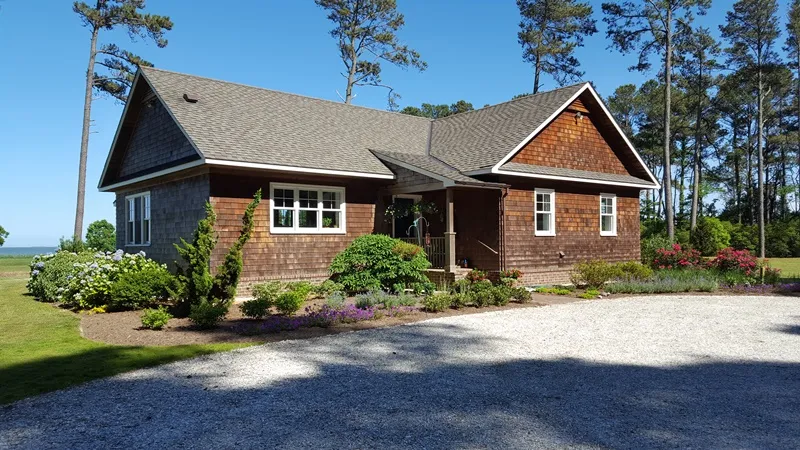 Earth craft certified green ICF wall system built home with seaside/ocean views and breezes. *VERY LOW MAINTENANCE* Stunning sunrises/moonrises. Cedar shake shingle exterior. 29 acres combination of open, wooded and marsh with a one acre pond. Abundant wildlife and beautiful landscaping. Home has cherry floors throughout with heated tile bath floors. Minimal furnishings necessary as there are built ins throughout; bedrooms fully built in. Geothermal HVAC with dehumidification system. Screen porch with brick floor and copper roof. 22' x 40' detached garage/shop with 20' x 18' office space with full bath and could easily be converted to an apartment/mother-in-law suite. There is a separate well. Adjacent kayak/small boat landing for seaside access.