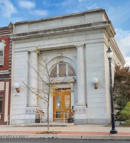 The gorgeous Milton Art Bank is for sale. A beautiful Beaux Arts building on S. Front St w/ grand columns and two original bank safes intact. Was the Public Library from 1932 - 2015. Currently used as an over 1500 sq ft contemporary art gallery. A completely flexible space. One and a half baths and a small studio on the first level, additional storage upstairs, and a mezzanine. Beautiful details throughout. This is an exceptional piece of Milton's history and located in a developing Central Business District. Street parking and free municipal parking lot. Come take a look!