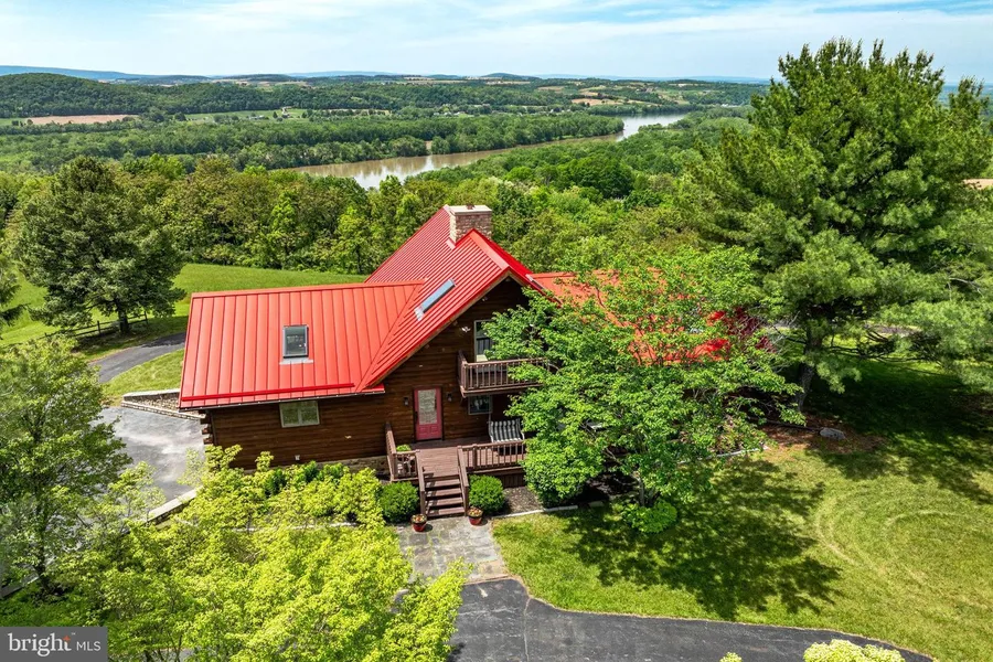 A Rare and Exquisite Susquehanna Valley River view Retreat on 14.86 Acres. Welcome to a truly one-of- a-kind custom log home, perfectly perched to capture panoramic, 5 county views of the majestic Susquehanna River. This private 14.86-acre sanctuary offers peace, serenity, and luxury - all in one breathtaking package. With over 2,200 square feet of thoughtfully designed living space, this 3-bedroom, 2.5-bath home blends rustic charm with a contemporary interior flare. A spacious loft offers flexibility for a potential fourth bedroom, den, or home office. Step onto the welcoming large front porch and enter through a large foyer with storage closets. Around the corner awaits the show-stopping chef's kitchen, featuring handcrafted Dale Wolfe cabinetry, a built-in pantry, soft-close drawers, granite countertops, and a massive island centerpiece. Culinary dreams come alive with 2 ovens, built-in microwave, gas cooktop, and oversized stainless steel sink. The cherry cabinetry adds warmth and richness to the space. Just off the kitchen, the dining room impresses with inviting pine log walls and ceiling, a vaulted ceiling(throughout) and a wall of windows that flood the space with light and views that stretch for miles. Sliding glass doors open to a spacious deck - the perfect spot to enjoy wildlife and quiet mornings. The soaring two-story family room features a vaulted ceiling and a stunning stone-surround wood-burning fireplace with heatilator, creating the heart of the home. Each room in this home is designed to take full advantage of the surrounding natural beauty. The primary suite is a luxurious haven, offering ample space for a sitting area, a large walk-in closet, and a spa-inspired ensuite bath with dual vanity, soaking tub, tile shower, and new flooring. An additional bedroom and a stylish guest bathroom with updated vanity and tile floors complete the main level. Upstairs, the loft space overlooks the main living area and provides the perfect nook for a study, reading area, or creative retreat. The finished lower level includes a 3rd bedroom which could also be used as a home office, craft room/ guest space. A large laundry room, ample storage, utility room all surround the lower level. The center focal point of the finished lower level is a sitting area or entertaining space which features a cozy wood- burning stove. Recently updated with new LED lighting and luxury vinyl plank flooring. Additional features include: Reclaimed wide-plank wood flooring throughout the upstairs main area of the home along with hardwood flooring in remaining areas All new Anderson sliding glass doors Recent standing seam metal roof by Weather Proof Roofing New Water Furniture geo-thermal heating/cooling system for top-tier efficiency Whole house water filtration and new pressure tank Oversized 2-car garage with new insulated doors This property is more than just a home - it's a lifestyle. Tucked away yet still close to modern conveniences, this is your opportunity to own a rare gem with unmatched views, privacy, and craftsmanship.
