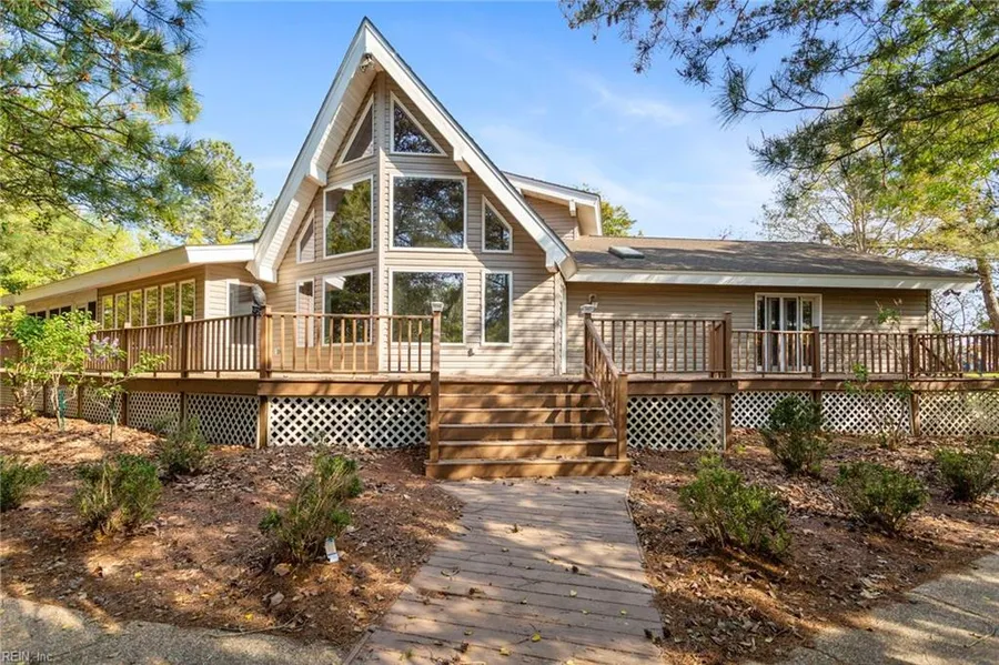 Welcome to your dream waterfront home! This stunning 3 BR, 2.5 BA home is nestled on over 2 acres on Warehouse Creek. The living room has vaulted ceilings, a two story window wall with views of the water & brings in natural light. The kitchen is open and offers space for dining, entertaining guests and is enhanced by quartz countertops, stainless steel appliances. The skylights & vaulted ceiling give an airy feel and enhances the beautiful finishes throughout. Two bedrooms on the first floor both with large walk in closets & baths. The primary bedroom has french doors that open to the full back deck overlooking your private pier on the water. An additional bedroom is on the second floor. Don't miss the basement with space for storage. The paved driveway leads to a two car garage with attic above. An impressive outdoor space, with a gazebo at the point of the property perfect for entertai...