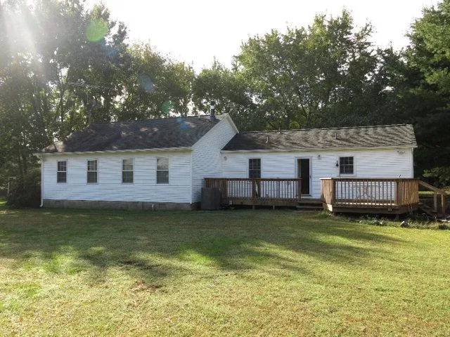 Nice home & MASSIVE GARAGE in a wonderful setting situated on 4.11acres private acres (2 lots). Home features: 3 bedrooms, 2 baths, Large eat-in Kitchen, Tiled Baths, Laundry Room, Brand New HVAC, roof only 7 years old, 14 x 8 front Deck & a 375sq ft back. The Main Feature of this great Property is the unique 40x40 4 bay garage (8 cars could fit)*** PLUS A GREAT 24x20 Attached MAN CAVE with Checkered Floors, wired for surround sound & TV's and heated/cooled! The Second lot is a beautiful grass lot, perked & ready to build a home if you desire & has a 24X32 Pole Barn on it! Great Location with several towns, restaurants, shopping nearby! Community offers a boat ramp. Great Price for ALL THAT IS OFFERED!