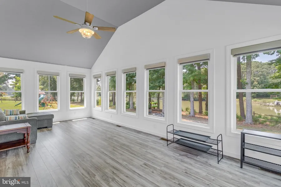 Welcome to your Waterfront Haven close to the Chesapeake Bay!!! It's rare to find a newly built home with private water access and private pier. The home has been meticulously maintained by the owners and still feels and looks brand new! You'll be truly amazed when you step inside this gorgeous home. The super modern bright home opens to a large living room/dining combo with cathedral ceilings, recessed lights galore, gorgeous kitchen with island, LVP floors, and waterside sunroom with remote controlled automatic blinds. You'll have the best peaceful water views from the sunroom with wall to wall windows and tons of natural light coming in. This 3 bedroom home is very spacious and has no carpet! The Large primary room with high ceilings has double doors that goes right out to the deck area and a large ensuite bath. The two guest rooms are spacious as well and share a full bath. All three...