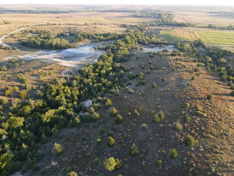 Located less than one-half mile from the South Fork Solomon River in northwest Kansas. This dual purpose grazing and trophy hunting tract is large enough for meaningful wildlife management and several strategic watering stations. The property is defined by rolling native grassland hills and deep wooded canyons littered with natural springs.