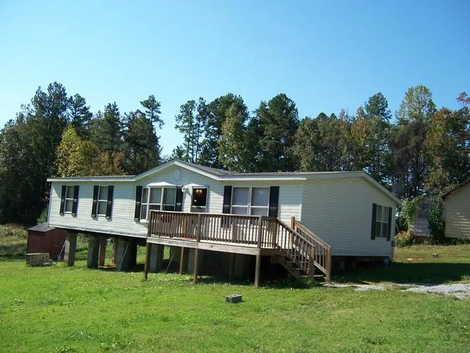 This neat rancher features a large master suite in addition to 2 more bedrooms and another bath. It boasts an eat-in kitchen, a utility room, a dining room with a fireplace, and a living room. It has new carpet throughout and is heated and cooled by a heatpump. All appliances convey and the storage building does too. A permanent block foundation will installed prior to closing. It is situated on 1 acre, but there are 2 additional acres available if interested. A great buy for $79,000.