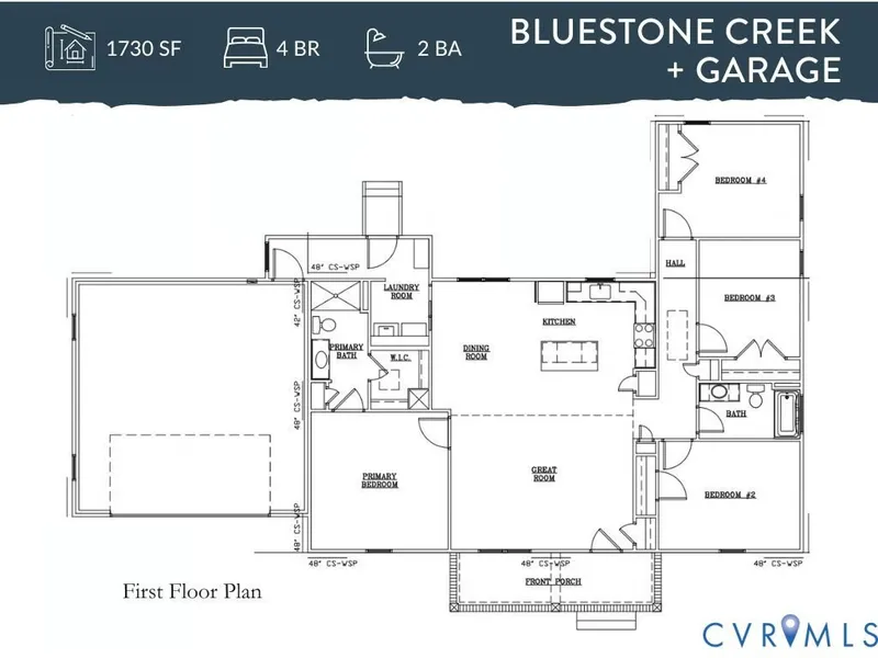 This charming abode, set on 7 acres , offering the perfect blend of comfort, tranquility, and natural beauty. Step inside and discover the Bluestone Creek , a meticulously designed home boasting 4 BEDROOM 2 BATHROOM home, thoughtfully arranged to provide ample space for relaxation and rejuvenation. The airy and inviting LIVING spaces are adorned with tasteful finishes, creating an atmosphere of warmth and elegance. The KITCHEN features GRANITE counters, MERILLAT CABINETS, a central ISLAND & a PANTRY. LVP FLOORING runs throughout the main living spaces. The PRIMARY BEDROOM is privately located on one side of the home, featuring an EN SUITE BATHROOM with a LINEN CLOSET & a WALK-IN CLOSET. The other 3 bedrooms are located on the other side of the home that share a full bath. Slated for completion December 2025.