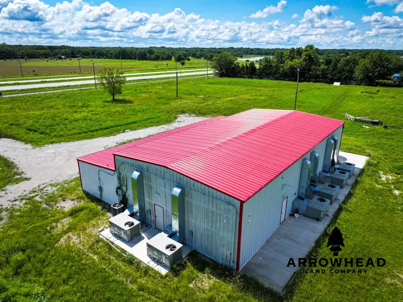 PRICE REDUCED!!! Are you in the market to start or expand your growing operation? Green Country Grow Site is located just south of Delaware, Oklahoma, in Nowata County on the west side of Highway 169. This +/- 6-acre lot is home to a red and white 40x80 insulated steel structure with 17 ft ceilings. This turnkey property has 3-phase power GE in place with a Spectra switchboard/300 KVa. The main veg room is sized at 590 sq ft, and two flower rooms are sized at 800 sq ft each. Each grow room has two Trane rooftop style units, 7.5 tons each (15 tons per room). The dehumidifiers are first generation Quest 220’s, with three in each room. Inside the drying room, you will find three Quests and a Larkin walk-in cooler to help maintain a proper environment for drying and curing products. The grow lights on site are MedicGrow Spectrum Y Wireless LEDs with UV/IR supplementation and their own controller. A Trolmaster Pro controller and components are used to run all environmental systems. Air curtains are available for all exterior doorways, as well as sticky mats and sanitizer mats for protection in all crop-sensitive areas. There is a large walk-in safe that doubles as an above-ground storm shelter for employees. Included in the sale are a refrigerator and a microwave located in the break room, an additional large fridge, and two deep freezers. The security system, fire, and smoke alarms are all Glenn Security. There is a non-potable well and two rain tanks outside with an 11,000-gallon capacity. The building utilizes rainwater collection that feeds into two 1,020-gallon storage tanks inside. A pump system moves the rainwater to each of the separate main grow rooms. The water is both sediment and UV filtered as it enters the interior tanks. There is a bathroom with a shower and laundry on site, along with a 30-amp service RV pad with water, electric hook up, and septic. This top-notch facility is secured with an 8 ft chain-link fence topped with barbed wire. For added security and convenience, there is a solar-powered gate just off the Highway 169 frontage road. Not interested in growing? No problem. This much commercial space in such a prime location would be a great fit for any type of industrial business venture. Nowata County has no lot split requirements and does not require zoning or building permits. The building is on city water. Both the potential and the possibilities are endless! Come and see for yourself! Green Country Grow is conveniently located +/- 30 minutes from Bartlesville, OK, +/- 30 minutes from Coffeyville, KS, and just +/- 50 minutes from Tulsa International Airport. All showings are by appointment only. If you would like more information or to schedule a private viewing, please contact Chuck Bellatti at (918) 859-2412 .