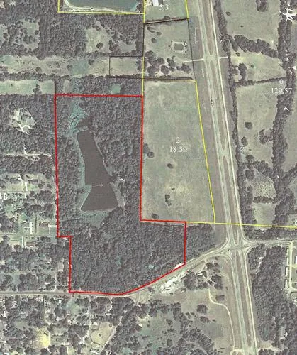 This 35+/- acre wooded tract offers a rolling contour w/ small lake, residential and commercial potential, city water and sewer, and other utilities.