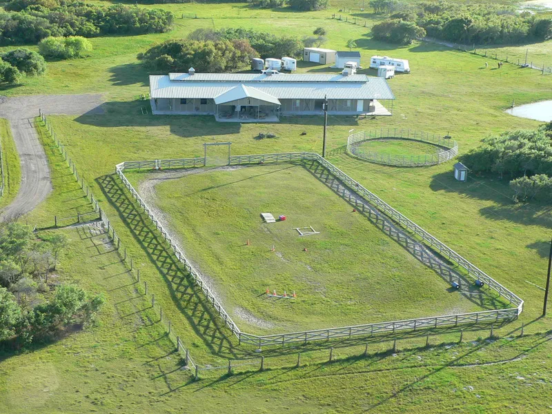 Rare opportunity to own approximately 80 acres(79 AG exempt) near Flour Bluff Drive and Yorktown that backs up to redfish tailing ponds on the King Ranch! "Barn Master" stable(2002) with metal roof boasts 10 horse stalls, pens, feed room. Barn features spacious kitchen, office, 20 saddle tack room, half bath, all with A/C, feed room, huge covered porch overlooking the arena, circle pen and small lake. Attached living quarters with R panel roof and 6 inch insulation with metal/plywood/metal construction, open floor plan features granite counters and island with seating, great master suite down with 2 walk-in closets, loft bedroom, laundry room and den with fabulous views and privacy. Recent solar panels($30,000), wind generator, 4 water wells, irrigation system, reverse osmosis, King Ranch fencing, hay barn, 2 bay equipment/garage/workshop/storage shed. Hunters paradise for dove, deer and ducks. All just minutes from popular Flour Bluff schools and Padre Island! DON'T MISS DRONE VIDEO! Call Zoe Gottlich (361) 813-9460 for more information.