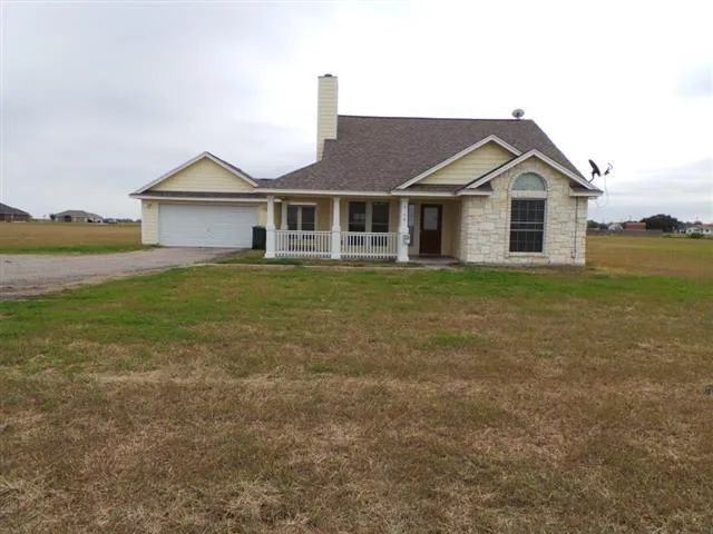 James Dean Model house for sale...3/2/2 on approx. 1.11 ACRE. The homes has never been occupied its been used for office location. Open floor plan, split bedrooms, Master bath has his & her sinks. Granite counter tops in baths and kitchen. Off kitchen there a small breezeway that was enclosed, great area for office. Wonderful stone wood burning fireplace in living room. Nice front covered porch. Banquete ISD!