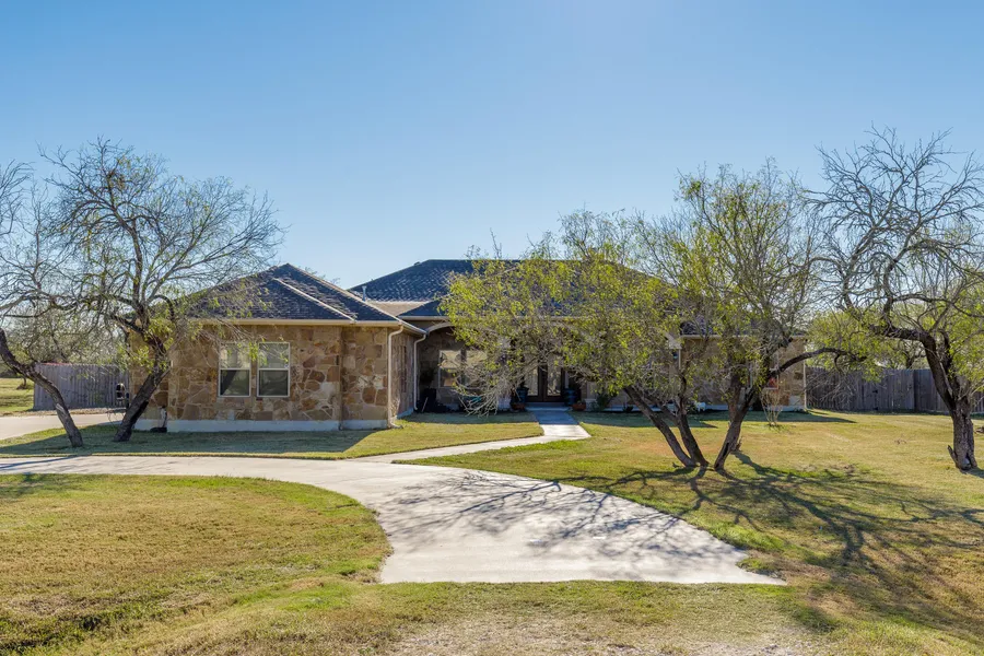 Welcome to the country! Conveniently located in New West Lake subdivision, this 4 bedroom, 2.5 bath home on 1.3(+/-) acres offers many special features! Large living room has fabulous custom built-ins & corner fireplace with impressive mantle & is open to the amazing kitchen with exotic granite counters, double ovens, five burner gas cook top, tons of cabinets & counter space. Enormous master with en suite bath featuring a one of a kind rock shower, granite counters with double sinks & two closets. Half bath is tucked away for guests. Split bedroom floor plan with extra spacious bedrooms; one being as big as the master! If you enjoy cooking & spending evenings outdoors you'll be overjoyed to unwind in the great spot on the covered patio & use the outdoor gas cook top. Huge yard is adorned with mesquite trees & offers chicken coop & pet area on side of yard. Can't forget the over sized three car garage. An additional 1.3+/- acres next door is also available to purchase. Come view today! For more information call KATY GROTH 361.960.0066