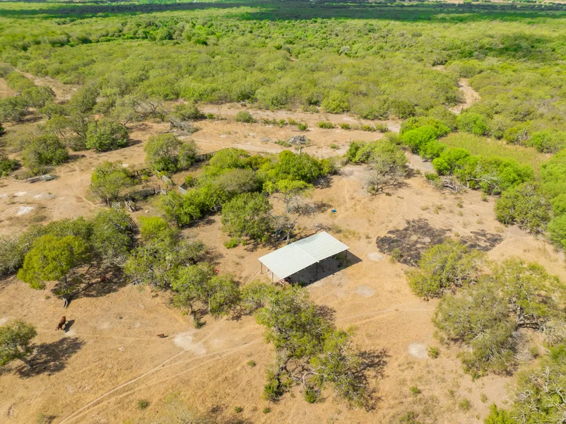 The topography of the ranch is relatively flat on the east side and gently sloping with a change in elevation from 55 to 30 above sea level, sloping towards Sandy Hollow Creek that cuts through the west side of the property. This area of the county is not mapped fully for flood plain, however, the creek system is lower and is part of the flood plain area of the Nueces River. This flood area appears to cover approximately 30% of the property, with a couple of low areas identified on the east side of the property as well. The soils are clay to sandy loam, identified as Edroy clay soil, along with Miguel, Papalote, Clareville sandy loam, plus Sinton and Clareville clay loam. From the middle to east side of the property there two improved grass pasture fields encompassing approximately a third of the whole property. The remainder is mostly big trees and brush with some nice, maintained shredded areas scattered around the west side.
