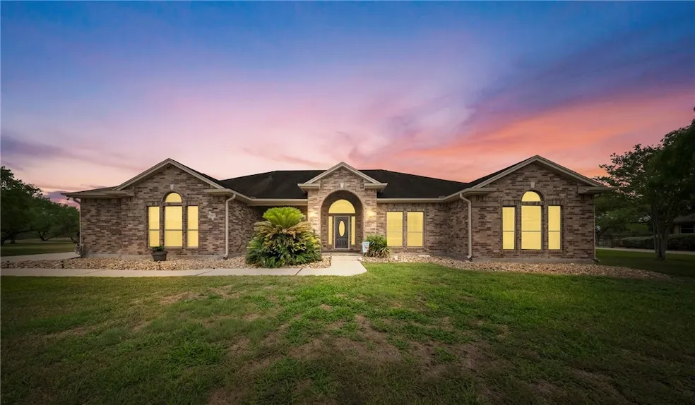 THIS IS IT! Beautiful one story brick home situated on a 1.5 acre lot +/- featuring 4 bedrooms PLUS office, 3 full bathrooms, plus one half bath. Step inside the grand living area with impressive tray ceilings and brick fireplace, opening to the dining room and kitchen with breakfast bar and island. Open floor plan with split bedroom arrangement. Spacious primary bedroom with private entrance. En-suite features huge walk-in shower with bench, dual vanities, and a large walk-in closet with built ins. There is also a second en-suite bedroom. Large laundry room with storage. Step outside and enjoy the covered patio, refreshing swimming pool and lots of space for entertaining. Attached garage and HUGE detached 40x60 workshop with 3 bay doors, storage, and an air conditioned exercise room. Country living, close to the conveniences of town; just 12 miles from Calallen and 7 miles from Orange Grove. Don t miss the opportunity to make this exceptional property your own!