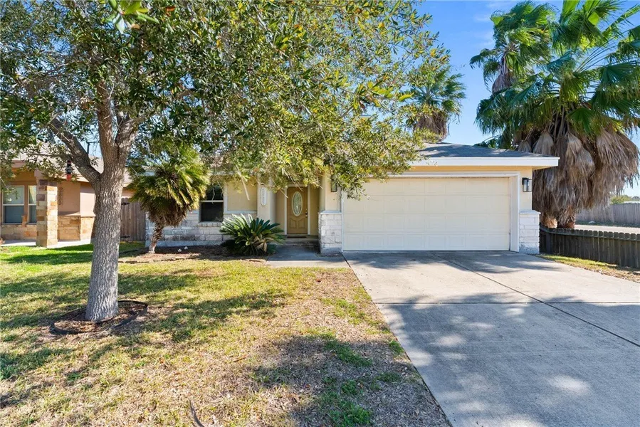 Enjoy a peaceful residential setting in Flour Bluff, ideally located between the city and Padre Island, with quick access to NAS-CC and everyday conveniences. This beautifully maintained 3-bedroom, 2-bath home sits on a desirable corner lot and offers everything you've been looking for. The backyard is designed for summer entertaining, featuring custom wood decking to accommodate an above-ground pool-perfect for backyard BBQs and gatherings. Inside, the home offers a split-bedroom floor plan with tile flooring throughout, vaulted ceilings, and a cozy wood-burning fireplace for cooler winter nights. The kitchen and bathrooms feature granite countertops, along with a built-in microwave, new dishwasher, gas stove, and a conveniently located laundry area just off the kitchen. Additional highlights include a 2-car garage and a custom 8x12 storage shed equipped with its own A/C unit, ideal for storage, a workshop, or hobby space. Schedule your private showing with your realtor today and see all this home has to offer.