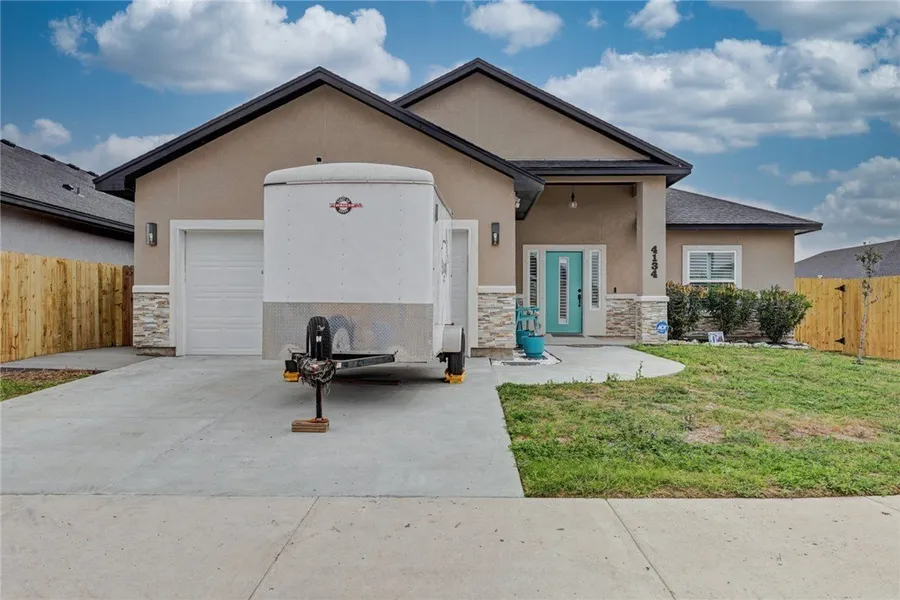 Welcome to 4134 Nadia! This 2023 Chershire Oak home is like new as the owner has taken immaculate care of it. This home is absolutely stunning and offers 3 bedrooms, 2.5 bathrooms, 1,868 sf, granite countertops, tile flooring & plantation shutters throughout the entire home, an oversized driveway, 2 car garage, and is ready for its new owners. The living room is massive (approx. 18'6" x 18'2") which fits a large sectional couch, high ceilings, custom fireplace, and provides a nice open concept for entertaining. The kitchen boasts with a large island, granite countertops, pantry, a ton of cabinets providing ample storage. The primary suite is at the back of the home, has a gorgeous feature wall, fits a king-sized bed, has a barn door that enters into the primary suite offering a tiled shower, garden tub, private wc, dual sink vanity and a large walk-in closet with built in drawers and shelves. The other two bedrooms are at the front of the home and each of them has a bathroom on their side of the home. As you make your way outside you will find an oversized patio with a ramp for wheelchair accessibility and fully fenced yard. Make your appointment to view this gorgeous home today!