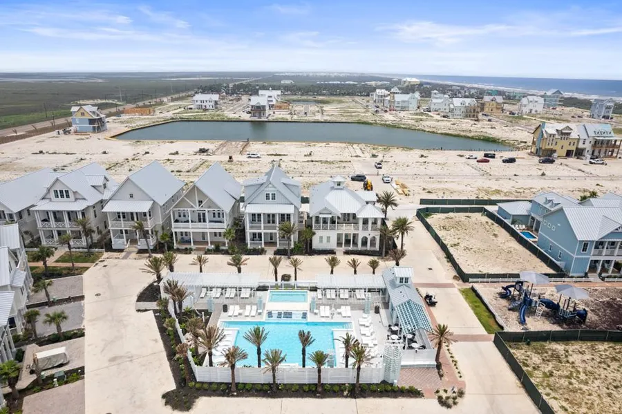 Welcome to one of Port Aransas newest luxury communities with bountiful amenities and more on the way. Amazing attention to detail including several porches, ample natural light and even a cupola. End unit for added privacy and space, and perfect views of the community pool and play area. All 4 bedrooms have an ensuite bathroom. Like new construction, furnishings and appliances. Two garage spaces and plenty of room for guest parking.