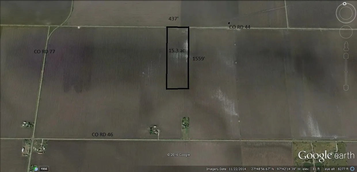 15 acres just a few miles west of Robstown on County Road 44. Always been farmland and can stay that way, or if you want to have a place in the country this might be it. Build your home, have a garden and raise some cattle!