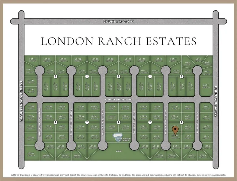 Introducing London's newest gated community, London Ranch Estates, offering peaceful views of untouched farmland. Enjoy a little over half an acre home site within this community acting as a blank canvas for your dream estate. Located in the heart of London, London Ranch Estates is a gated community designed to maximize privacy and peace, while cultivating an inviting and spacious neighborhood. This intimate community features 108 homesites with each lot being a minimum of half an acre for added privacy. Community amenities to include a luxury ranch style gated entrance, community swimming pool and lazy river, pond and park. Choose your own builder and architect for your dream home on your home site and build when you're ready. Prime serene location and just minutes from the highway where you can find restaurants, shopping, and entertainment. Secure your luxury ranch style home site toda...