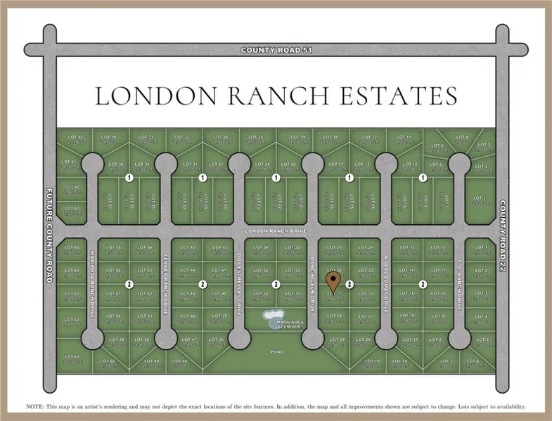 Introducing London's newest gated community, London Ranch Estates, offering peaceful views of untouched farmland. Enjoy a little over half an acre home site within this community acting as a blank canvas for your dream estate. Located in the heart of London, London Ranch Estates is a gated community designed to maximize privacy and peace, while cultivating an inviting and spacious neighborhood. This intimate community features 108 homesites with each lot being a minimum of half an acre for added privacy. Community amenities to include a luxury ranch style gated entrance, community swimming pool and lazy river, pond and park. Choose your own builder and architect for your dream home on your home site and build when you're ready. Prime serene location and just minutes from the highway where you can find restaurants, shopping, and entertainment. Secure your luxury ranch style home site toda...