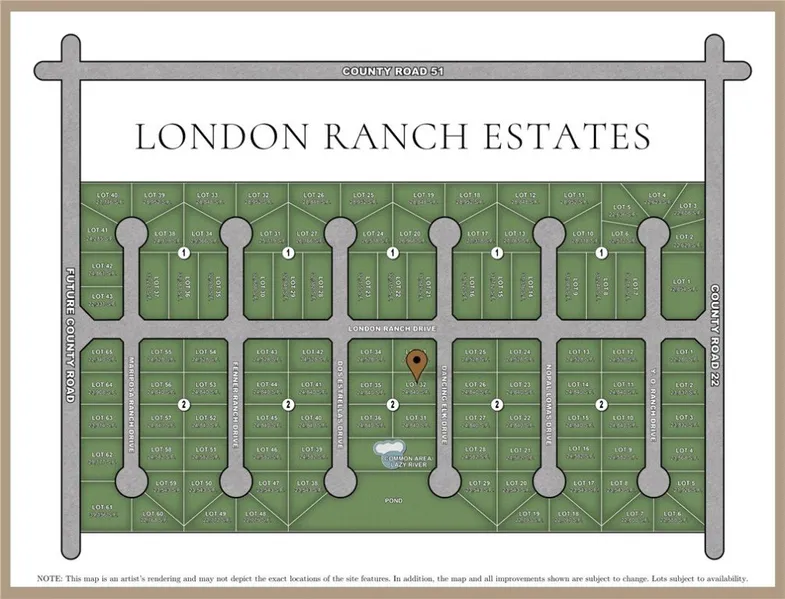 Introducing London's newest gated community, London Ranch Estates, offering peaceful views of untouched farmland. Enjoy a little over half an acre home site within this community acting as a blank canvas for your dream estate. Located in the heart of London, London Ranch Estates is a gated community designed to maximize privacy and peace, while cultivating an inviting and spacious neighborhood. This intimate community features 108 homesites with each lot being a minimum of half an acre for added privacy. Community amenities to include a luxury ranch style gated entrance, community swimming pool and lazy river, pond and park. Choose your own builder and architect for your dream home on your home site and build when you're ready. Prime serene location and just minutes from the highway where you can find restaurants, shopping, and entertainment. Secure your luxury ranch style home site toda...