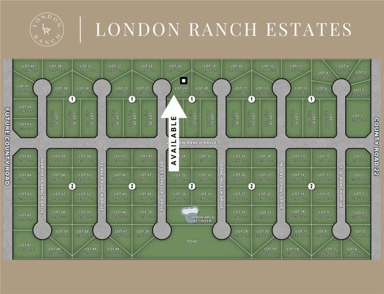Introducing London Ranch Estates, London's newest gated community, where serene views of untouched farmland provide the perfect backdrop for your dream estate. Nestled in the heart of London, this brand new neighborhood offers expansive homesites of at least half an acre, creating a unique opportunity to design and build a custom home that fits your vision. Designed for privacy, tranquility, and elegance, London Ranch Estates features 108 spacious homesites, each thoughtfully planned to offer a balance of seclusion and community. Residents will enjoy premium amenities, including: a luxury ranch-style gated entrance for enhanced security and sophistication, a resort-style community pool and lazy river for ultimate relaxation, a scenic pond perfect for outdoor enjoyment. With no restrictions on builders or timelines, you have the flexibility to select your preferred builder and architect a...