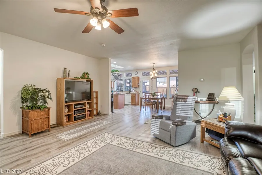 This home has it all! Converted to real property, 2.5 acre lot! Circle driveway, 2 garages, car port and covered RV parking! Immaculate and highly upgraded! Laminate floors! Carpeted bedrooms have lush padding! Tons of natural light and mountain views from the living room. 9 ft ceilings, walls and roof with double insulation, 400 amp power to home and 2x6 framed walls. Primary bedroom has spacious walk-in closet. Grand spa bath with two sinks and walk-in shower! Secondary bedrooms have walk-in closets. Custom woodwork throughout. Bright open kitchen with island, pull-out shelves, walk-in pantry and stove plumbed for gas and electric! Security cameras stay! Ac return in each room, keeps whole house at even, cool temperatures! Large covered patio out back, overlooks the fruit trees, garden house and shed, outdoor bar, BBQ area and mountains! 4 gates from backyard and double gates in the ba...