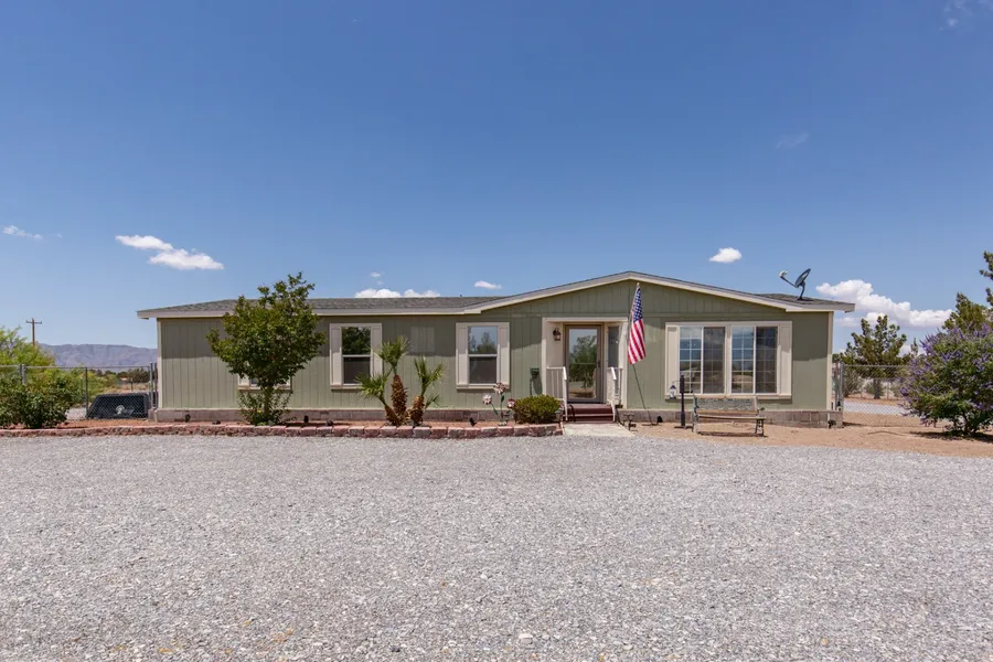 Inside you'll find an open and airy floor plan with floor to ceiling windows filling the space with natural light. Two bedrooms PLUS a den that could easily be converted to a third bedroom finished with two tastefully updated bathrooms. The kitchen is open to the living space with a center island, wine fridge and an R/O drinking water system. The exterior boasts two double wide gates, full RV hookups with 50 amp service, rear 2 bay carport and a two car garage with 30 amp service to handle any amount of tools and a rear yard speckled with numerous fruit trees. The home also has a brand new roof, new central A/C, new well pump and recently replaced water heater.