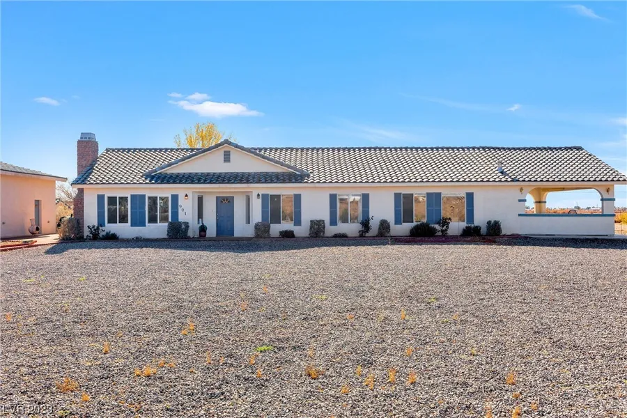 This beautiful standout 2076 sf custom home will draw your eyes to the 2.30 acres of fully fenced manicured property.The installed rock makes it low maintenance.The property has NEWLY installed flooring throughout,NEW A/C unit,NEW dishwasher,NEW windows,NEW washing machine and the home is energy efficient with recently added 5 tons of insulation. The rural estate has a total of 4 BR/ 3 Bath.The spacious primary bedroom has a slider that leads to a house length covered patio where you can admire the mountain views. The additional 3 bedrooms are above average size and freshly painted. Additionally, the estate has a detached fully contained 1BR/ 1Bath guest/rentable house with fully equipped kitchen,NEW carpet and NEW paint.The guests will also love the outdoor log porch. Private well house on property and a 16 ft pole barn.Your choice,garage is a living space for you or cars.Lg shipping storage crate w/power also conveys with the property.Pahrump,NV is approx 60 miles from Las Vegas.