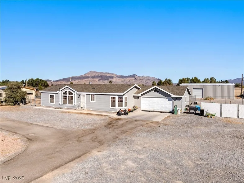 Welcome to your private oasis in Rancho Del Sol, Pahrump NV! This beautifully maintained 3-bedroom, 2.5-bath home offers 1,522 sq. ft. of updated living space on over 1.14 acres of fully fenced land. Inside, you ll love the functional floor plan with a spacious great room featuring a cozy wood-burning fireplace, and a chef s kitchen equipped with stainless steel appliances, island, pantry, breakfast nook, and butler s pantry. The oversized primary suite features a large walk-in closet, separate tub and shower, and dual sinks. Each secondary bedroom also offers walk-in closets and ceiling fans. This home is a true retreat with mountain views, a full-length back patio, RV hookups, circular driveway, and a 30x50 detached shop with 14-foot tall side walls perfect for projects, toys, or storage. All-electric systems, private well & septic. No HOA, no restrictions. Move-in ready and just minut...