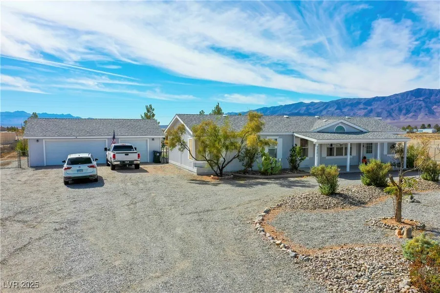 This is the mountain view country setting you've been looking for. Bright, and spacious 3 bedroom, 2 bath home on 1.01 acres! No HOA. Tons of yard renovations, cleaned, landscaped, and ready for a buyer seeking a turn-key home in the quiet south end of Pahrump, NV - only 1 hour to Las Vegas! Ceiling fans in every room, This home has great space, open floor plan for entertaining! 1 year old Air Conditioning & Heating system. A separate, massive 3 car garage is perfect for a home shop, hobbies, storage, plenty of outdoor toy space. Covered back patio opens onto privately fenced yard. Plenty of room on this property for your boat, RV, camper. Look no further, this is the place.