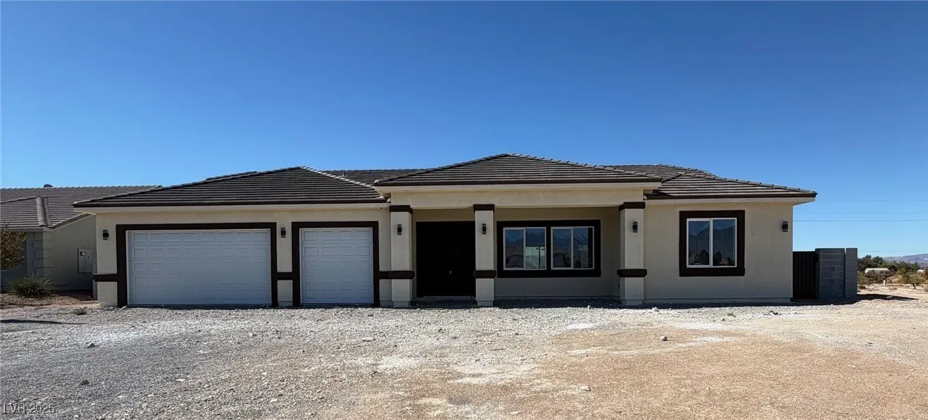 Gorgeous custom built with 2x6 studs, single story on 1/2 acre lot with oversized 3 car attached garage. Over 2,300 sq ft. Open floor plan with 10 ft ceilings and 8 ft doors. Gourmet chef kitchen with stainless steel appliances, custom cabinets, quartzite oversized island with 3" edges and pendant lighting. Living room with stone electric fireplace. Crown molding, lifeproof flooring and fixtures. Vanities with quartzite counters in all the bathrooms. Primary bathroom has an oversized walk-in shower and makeup vanity. Secondary bedroom with attached bathroom great for guests/family. Covered patio, block fence with RV gates and parking with hookups. Front entrance and driveway. Truly a must see!