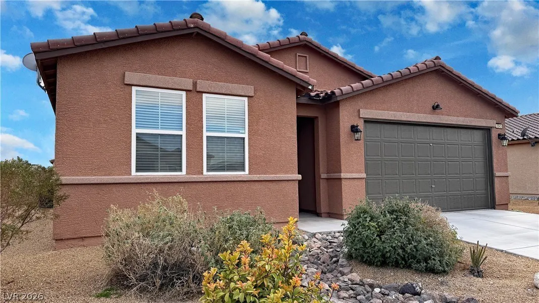 Beautiful 3-bedroom, 2-bathroom, open floor plan, 2 car garage, and RV parking. Nice open kitchen, granite countertops, island, includes all appliances and water softener. Big screen TV in the living room staying, furniture negotiable. Bright and comfortable living with ceiling fans in every room, offering year-round airflow and energy-efficient comfort throughout the home. Covered patio overlooking well-maintained landscaping with multiple fruit trees (cherry, apricot, peach, plum, apple and pomegranate), great mountain views. Great location with easy access to HWY 160/Las Vegas for commuters. Burson Ranch community offers walking paths, common areas, playground, and pet run park.