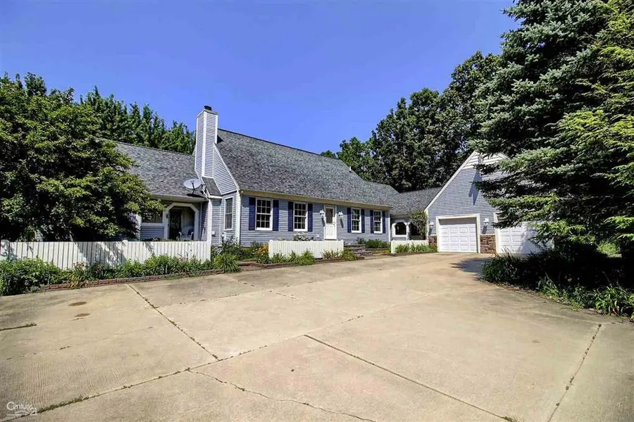 This charming, Cape Cod style, split level sits on 3 acres of land and provides over 3500 sq ft of living space. The first floor of the home features a formal living room w wood burning fireplace, formal dining room, sitting room, den/office, eat-in kitchen, and a three seasons room. You will also find the master suite here, with double walk in closets, a spacious master bath with tons of natural light from the skylights, a private entrance and front patio, and a private deck. The additional "wing" of the home provides a great room, including a second kitchen, powder room, laundry/mud room, and second story bonus room with full bath. Upstairs you will find the 2 additional bedrooms, one featuring a bonus cedar room with attic access, full bath, and office nook. The deck and stamped concrete patio offer plenty of space for enjoying the outdoors. You will be able to enjoy the feeling of li...