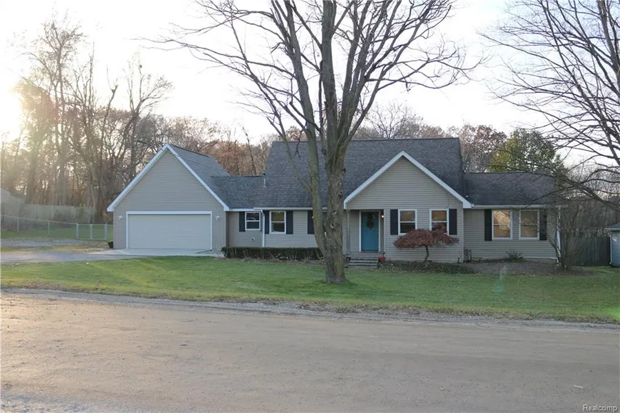Stunningly beautiful, updated, this home exudes warmth and character, presented on almost 3 acres of land! NEW OVERSIZED ATTACHED 2 CAR GARAGE AND LAUNDRY/MUDROOM AREA WITH HARDWOOD. Awesome Great Room has a soaring ceiling and an adjoining Ceramic Kitchen with breakfast bar. First floor Master Suite with built-in drawer space, a generous Master Bath with large tub. Upstairs Loft with full bedroom. Tree-lined, fenced backyard, landscaped with a stone walkway leading up to a beautiful pergola and fire pit! This home awaits to welcome you home - dont miss out!