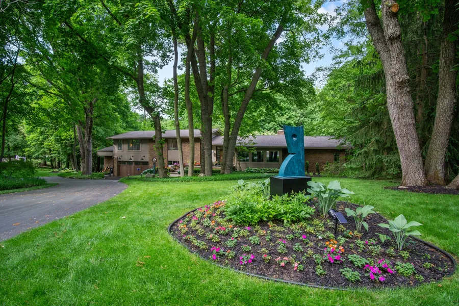 Spectacular soft contemporary four bedroom, three full bath and one half bath Bloomfield Hills estate. This exquisite residence is situated on over one acre of private lush landscaping and mature trees. This lovely home features an updated gourmet kitchen with custom white oak cabinetry, granite counters, stainless steel appliances, large center island and breakfast area overlooking the beautiful gardens. This unique home boasts a large 1 st floor library with built-ins, the great room is highlighted by a vaulted ceiling, floor to ceiling windows, brick accent wall and stunning chandelier, a grand dining room with fireplace, hardwood floors and extensive woodworking throughout. The master suite features built-in bookshelves, large walk-in closet, a luxurious master bath with spa shower and garden tub, and overlooks the stunning tranquil backyard. The floor to ceiling windows of the family room also overlook a paver stone patio and the secluded grounds. Newer AC, furnace and roof. Seller is replacing built-in refrigerator and cooktop stove with stainless steel appliances. Bloomfield Hills Schools. The spaces in this 5000+ sq ft home are superb and inviting, and perfect for entertaining and family living. A must see!