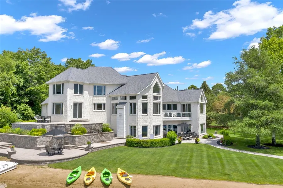 Remarkable all sports Lakefront Home situated on over 6 beautiful acres with approximately 800 feet of lake frontage. This gorgeous home, on the exclusive Whisper Lake, boasts views from almost every room including the amazing great room, open to the huge kitchen. An incredible master suite with gorgeous finishes as well as a beautiful upper level loft, spectacular lower level with a fabulous second kitchen featuring a massive leathered granite island, Large recreational space, beautiful bathroom and a walk out to the amazing Lakefront patio. The exterior of the home features meticulously maintained landscaping, two waterfalls, a tiered patio and so much more. A massive workshop below the 3+ car garage is terrific for any hobby with tons of storage. Do not miss out on this breathtaking estate. Buyer/buyer agent to verify all information.