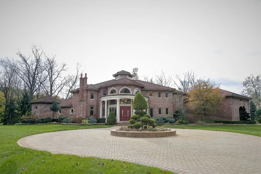 Custom French Country Masterpiece on 2.59 treed private acres with pond in Oakland Towship only 2 miles to downtown Rochester. Original owners. Built with marble and hardwood floors, 2 Story Grand Entry with Circular Wood Staircase, Marble floor opens to Dining room and Great room with custom mahogany fireplace, and windows overlooking pond and lush landscaping. Mahogany Doors throughout home, Custom Moldings, 5 Custom Fireplaces (each fireplace is uniquely designed), Mahogany library with Coffered ceiling, fireplace, and upper library loft. Designer Kitchen with granite island and sitting area opens to euro concrete terrace for entertaining. First floor Master Bedroom with walk-in closet, designer Master Bath with jacuzzi tub and shower with marble. The walk-out lower level has full kitchen, laundry, a custom mahogany bar with fireplace, Wine room, recreation room, exercise room, walk-o...