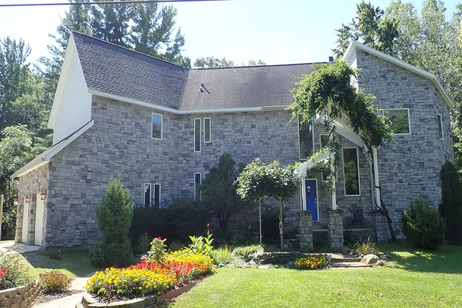 This gorgeous French inspired custom built home stands apart from all others with the open levels, commercial chefs kitchen, theatre room conveniently set into the cohesive floor plan. This four bedroom, four full baths with the informal mix inside and out of the natural stone, wood, hardy board, stainless and porcelain, is just what the extraordinary person would aspire to. It blends the natural wooded lot with a sun filled interior from dawn to dusk. The Spring to Summer pond can be crossed by wood bridge or get close and feed the wild painted-wood ducks and mallards. Ingenious ultra-open floor plan with 8 levels, each room has open view to at least 3 others. The Great Room was designed as the focal point of a multi-level New York Style Loft. High ceilings and over constructed floors open the entire home floor plan end-to-end. Possible changes include replacing the indoor koi pond with an open-air elevator that will reach nearly every level. A Chefs dream of a large modern professional grade equipped kitchen with free-standing Viking appliances. Stainless cabinets, counters and shelving are moveable and can be easily rolled away for thorough cleaning or re-arranging. Birds nest office sits overlook five of the eight levels. A spiral staircase could connect the Primary suite to loft offices. Home Theater with 12' diagonal 4k projected screen, 12' ceiling lighted soffit with walkout. Bonus of both outdoor and indoor heated pools to enjoy all winter long swimming and exercise. Or sit and enjoy the indoor patio poolside fireplace walkout. Need more playroom? The nearly finished sub-basement has plenty of room for a full-sized billiards table and more. Construction - 2 in. x 6 in. Walls, Engineered I-Beam Floor Joist & Rafters. Foundation - ICF (Insulated Concrete Form). All measurements approximate.
