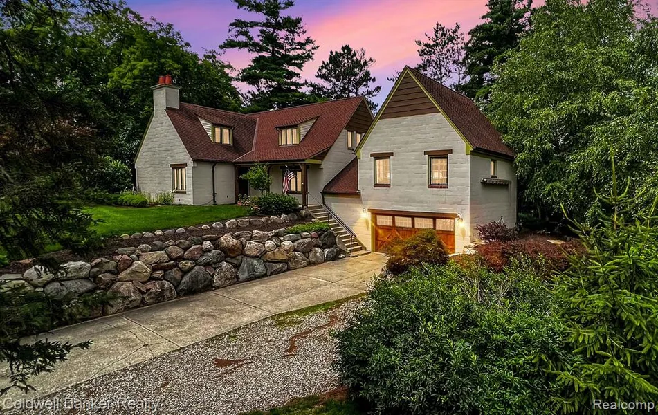 Welcome to this enchanting Tudor-style home, nestled on a sprawling 1.5-acre lot, with beautiful gardens and a lush, wooded setting. This 1927 built property exudes the timeless allure of an English country cottage while offering thoughtful renovations which meet today's highest standards. Divided light windows flood the home with natural light, highlighting gleaming hardwood floors and 5 panel cherry doors t/o. The substantial primary suite is located on the main level, with two additional bedrooms upstairs (and enough space to create a fourth bedroom if desired). The kitchen boasts top-of-the-line appliances, leathered granite countertops and custom Lafata cabinetry. The adjacent living/dining area flows out to the terrace, multiple patio areas and a screened porch, making for an entertainer's delight (don't miss the video). The genius drive-thru 2 car garage creates easy entry to Indianwood Rd. Basement has tons of storage and a full bath. Additional 2-car garage on property with even more storage up top. Resident access to private Indianwood Lake less than ¼ mile, Indianwood CC just steps away and downtown Lake Orion right up the road. This one is special!