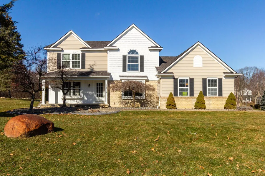 Welcome to your dream home. This well maintained 3 bedroom, 2 1/2 bath colonial nestled on a large corner lot in beautiful River Oaks sub is ready for you! This great home has wood floors throughout, an updated kitchen with leather granite counters, custom backsplash and newer appliances (4-5 yrs). Good sized family room with vaulted ceiling and a natural fireplace, main floor laundry, a den/library with glass French doors and a powder room. The second floor offers a comfortable primary suite with bath with tub and separate shower and a very good sized walk-in closets. Two additional bedrooms, main bath with tub and lots of storage space. All the updates have been done -- roof in 2019, R-60 insulation in attic, furnace in 2017, hot water tank in 2022, new well pipe and pump in 2020, water softener in 2022, and washer/dryer new in 2021. In 2023 new asphalt driveway, stylish cement edging around all garden beds and the patio brick pavers were all re-leveled and sealed and timed sprinkler system in 2020 the septic tank was cleaned and the field checked. Tank cleaned every 4 years. And last but certainly not least is the large hot tub ready for fun and just soaking you tension away. This house is a total winner - just minutes from downtown Milford, a sub with other beautiful homes and in the Huron Valley school district. Immediate possession too!