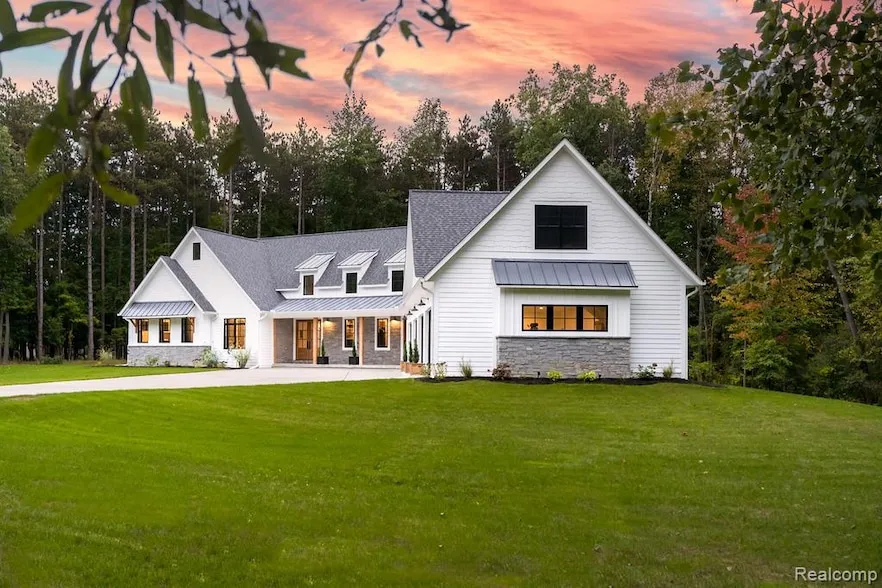 Welcome to this exquisite Modern Farmhouse -style ranch home, custom-built with thoughtful design and impeccable detail. Spanning approximately 3,221 square feet, this unique property features an open floor plan that blends elegance and comfort seamlessly. The home boasts three spacious en-suite bedrooms, plus an additional bedroom, perfect for guests or a home office. High-end finishes include custom vanities and local handmade cabinets, marble countertops, appliances w d 8-foot solid wood doors throughout, hardwood floors, spray foam insulation for superior energy efficiency, and a whole-house water filtration system, w instant hot and cold RO feature, Pella Windows, Abundant Storage in every room, Stunning Oversized 4.5 Car Garage, w workshop and upper floor for additional storage. The expansive full basement, complete with an egress window and plumbing for an additional bathroom, provides endless potential for customization for entertainment, or extra living space. Nestled on a serene 2.69-acre lot within the coveted "Pinery at Paint Creek" subdivision, this home offers a perfect combination of privacy and community. Surrounded by natural beauty, it s a rare find that provides modern comforts while connecting you to the outdoors. Don t miss the chance to call this exceptional property your new home! Total square footage includes finished en-suite above garage.