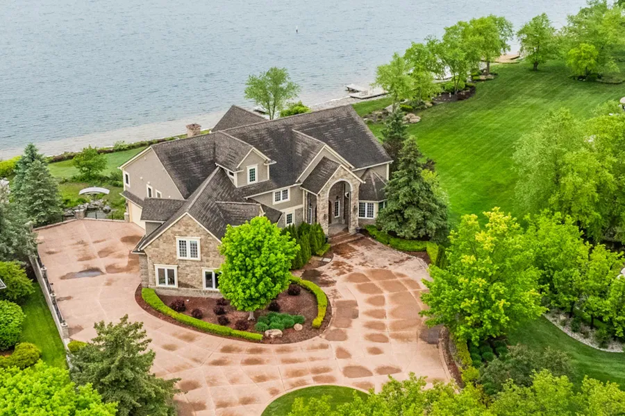 Magnificent, sprawling, custom built home ideally located with a panoramic lake view on Hidden Lake’s finest lot. Intricate, stunning staircase leading to 2 primary suites with mood lit tray ceilings, fireplaces and balconies overlooking Hidden Lake. Hydronic in floor radiant heating throughout including driveway and sidewalks! Main floor features a breakfast nook leading to the large deck with lake view. Home features an elevator to reach each level and boasts a 6 car heated garage. Wonderfully unique features including private home theater, indoor swimming pool, hot tub and sauna, sophisticated library and an elegant wine cellar amongst countless other stunning features. Lower level with walk-out full kitchen, dance floor, gaming and workout area. Beautiful landscaping adorns this idyllic lakefront home.