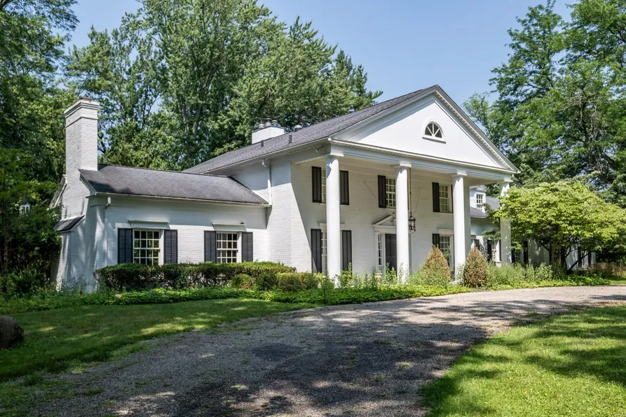 Stately estate-style Colonial on 1.26 private acres in Franklin, featuring a heated gunite pool, pool house (easily convertible to cabana/villa/guest house), and 5-car garage (3 attached/heated, 2 detached). Enjoy the peaceful sound of a neighboring waterfall and pond on one side and a spacious open lawn on the other, perfect for future expansion. One of the area's largest circular drives leads to a classic Colonial interior with high/vaulted ceilings, 3 fireplaces, wood and heated slate floors, and a stunning kitchen with French AGA range, double ovens, and large concrete island. Five en-suite bedrooms, including a main-level guest suite and an upstairs primary with fireplace, sitting area, and steam shower. The lower level offers a game room, billiards room, and wet bar.