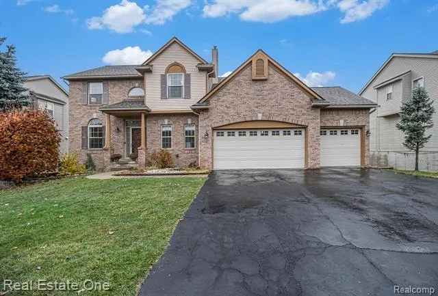 The main level is bathed in natural light and centered around a cozy gas fireplace. Check out the remote controlled blinds on the large family room windows! The kitchen features beautiful granite countertops, ceramic tile backsplash and opens directly to the living area. Step through the doorwall onto the large deck, perfect for entertaining and overlooking the spacious backyard—as a bonus, the playset stays! A convenient main-level laundry room and 3 car attached garage completes the first floor.