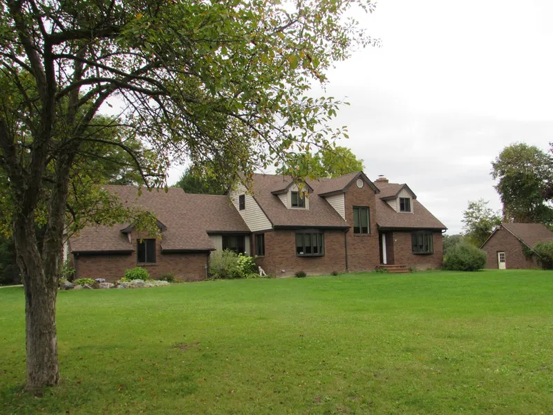 Gorgeous brick colonial on 11+ private wooded acres. Features include open floor plan w/ custom kitchen cabinets & counter tops, impressive hardwood floors & doorway leading to deck, overlooking pond. Over-sized bar leads to great room, w/ natural stone fireplace & large bay window w/ views of surrounding nature. Splendid 3 season room for relaxing. Spacious dining room complete w/ custom built-ins, perfect for entertaining. Sizable bedrooms w/ ample closets for storage.